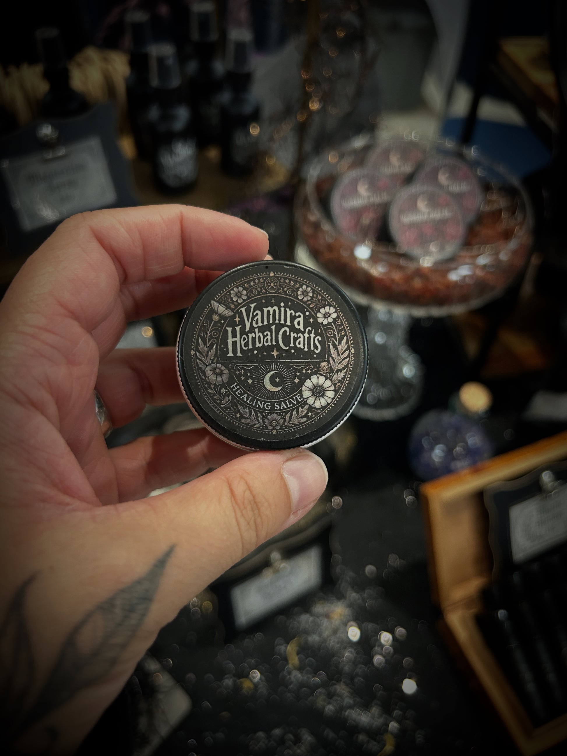 Soothe and restore your skin with our handcrafted Healing Salve, made with a powerful blend of yarrow, calendula, and comfrey — herbs revered for centuries for their wound-healing and anti-inflammatory properties. Each batch is slowly infused with care, then blended with beeswax and nourishing shea butter to create a protective balm that melts into the skin.